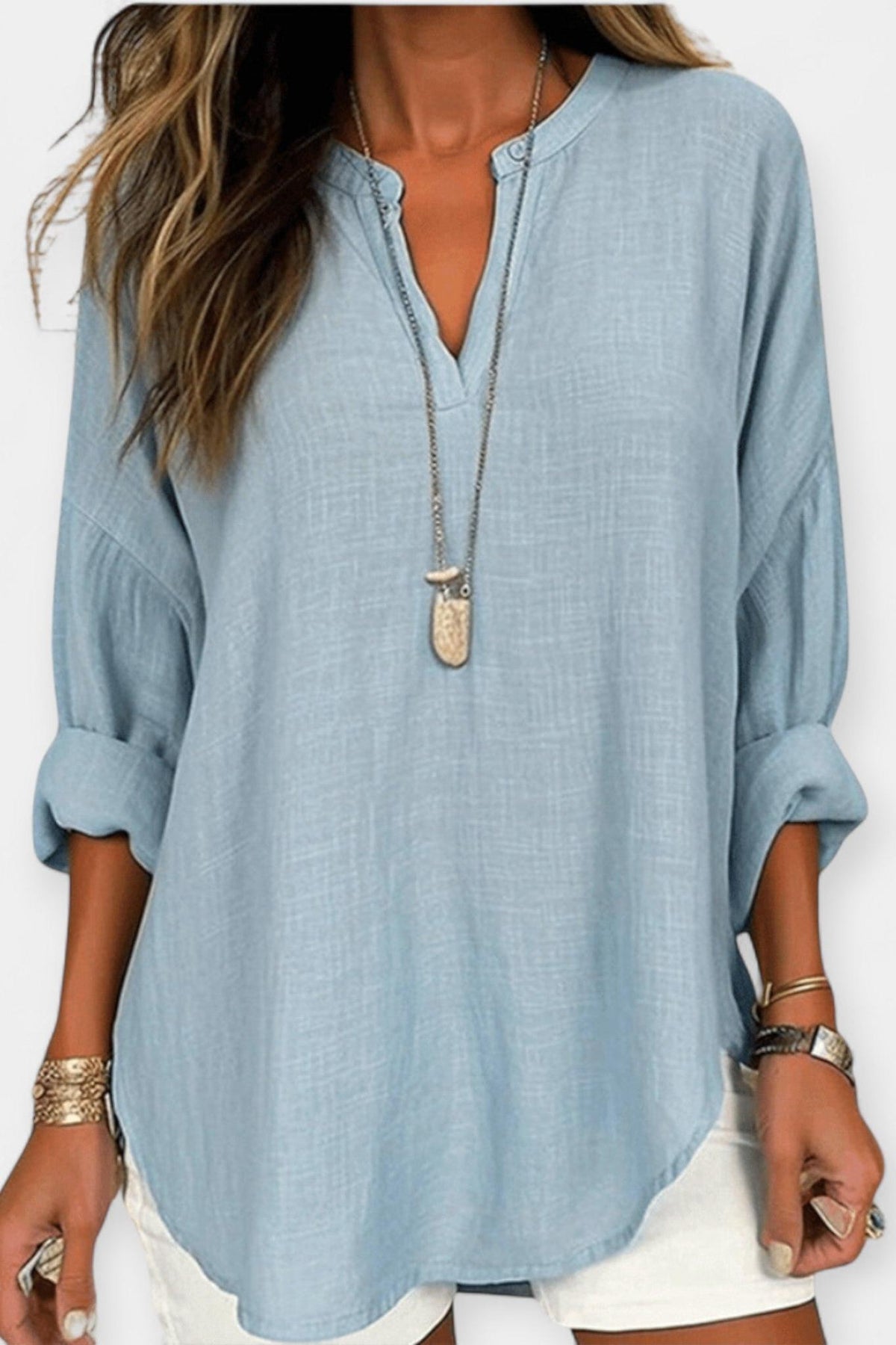 Emma | Let bomuldsskjorte fremkalder en ufravigelig følelse af let luksus gennem tidløs enkelhed og håndværksmæssig omtanke. Den åndbare bomuld holder kroppen kølig hele dagen, fra strandture til hverdags små eventyr, mens den afslappede silhuet smigrer kropslinjerne uden at gå på kompromis med stil. Den klassiske runde hals og de lange ærmer bidrager til et sofistikeret, tidsløst look, der nemt kan klæde op eller ned. Emma passer naturligt ind i enhver garderobe og bærer en autentisk fornemmelse af kvalitet og lang levetid. Den enkle konstruktion står som et tydeligt tegn på materialernes styrke og håndværkets omhu, hvilket gør Emma til en ægte investering i holdbar elegance.