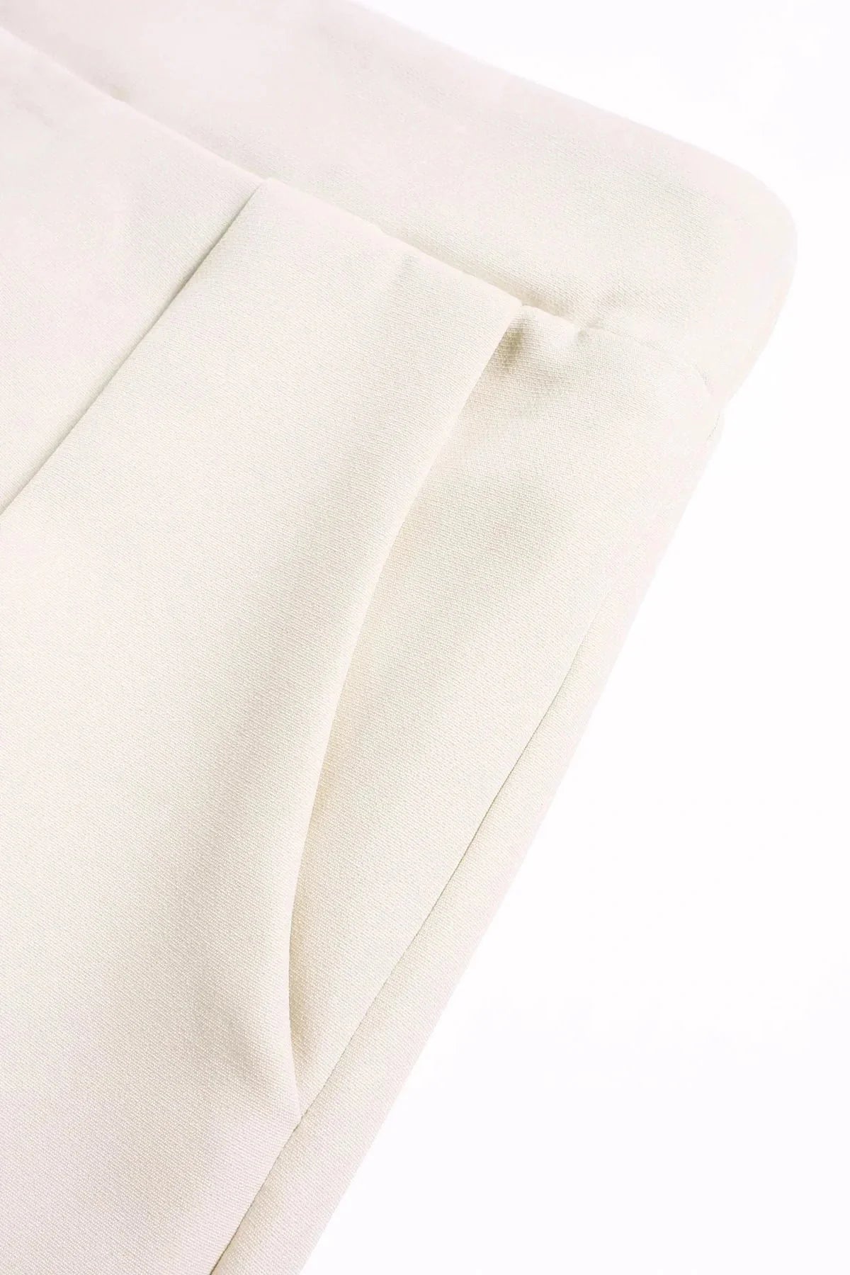 Birgitte | Dragt forener tidløs skræddersyn med moderne selvtillid. Sættet består af en robust ærmeløs vest med dekorative knapper og brede bukser, der sammen skaber en strømlinet, flatterende silhuet i en kremfarvet palette. Bellagio-præcision og omtanke for detaljer afspejler håndværk, kvalitet og en tidløs tilgang til design.