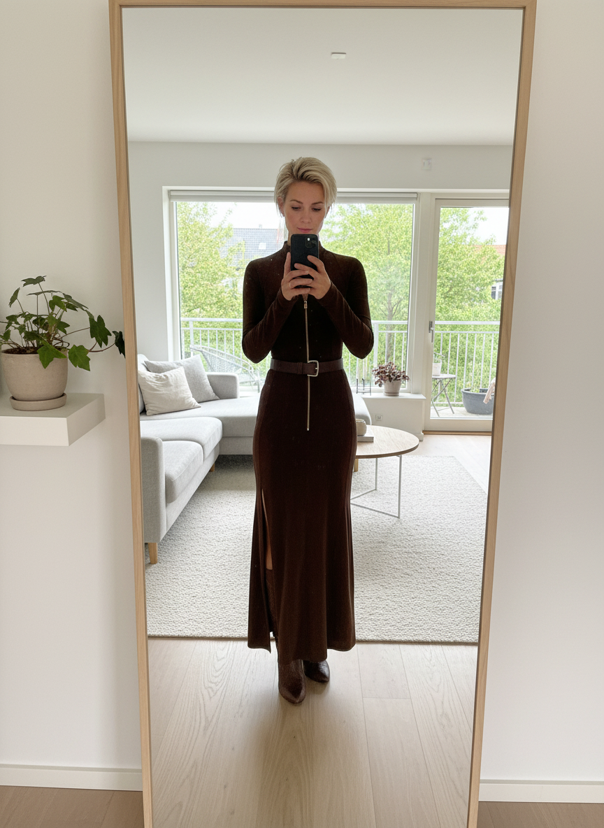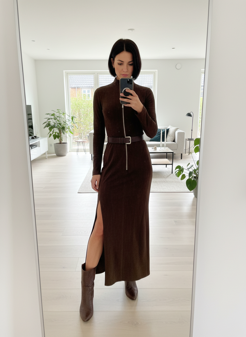 Inspireret af charmen i Københavns moderne gader, blev denne fantastiske kjole skabt til kvinder, der kan lide at dominere ethvert rum uden at hæve stemmen. Hver linje er designet til naturligt at forme silhuetten, mens det bløde stof skaber bevægelse og tilstedeværelse med hvert skridt. Lynlåsen foran og det strukturerede bælte løfter looket til et sofistikeret niveau, perfekt til travle dage eller uventede aftener. Det er et stykke tøj, der gør det hele for dig: det sidder godt, definerer og imponerer. Efter at have prøvet det på, indser du, at det ikke bare er tøj: det er attitude.