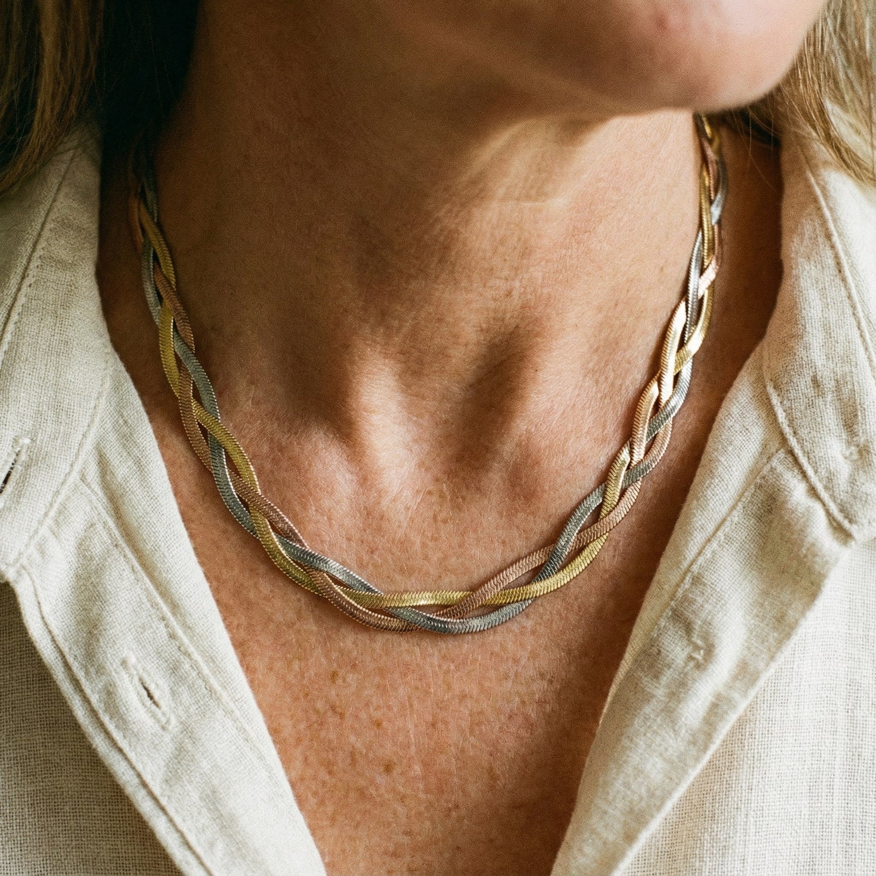 Elegant halskæde i guld og sølv