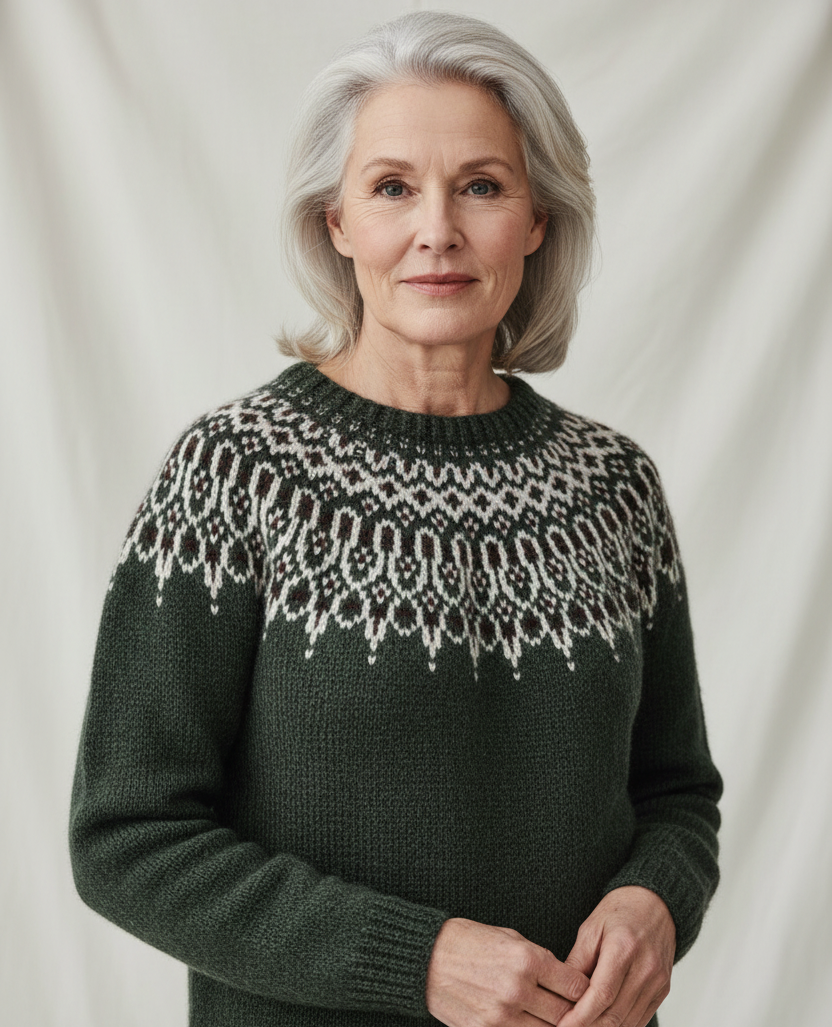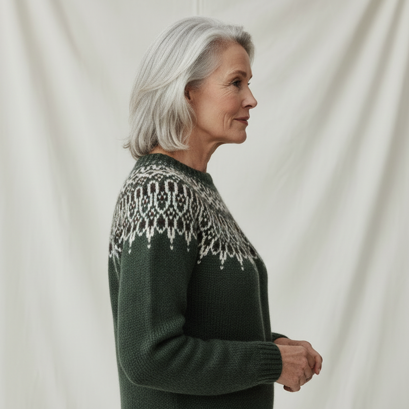 Aurora – Vintertrøje med raffineret rundstrikket skulderdetalje