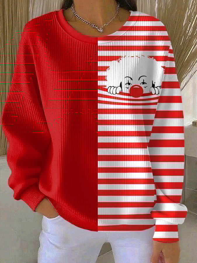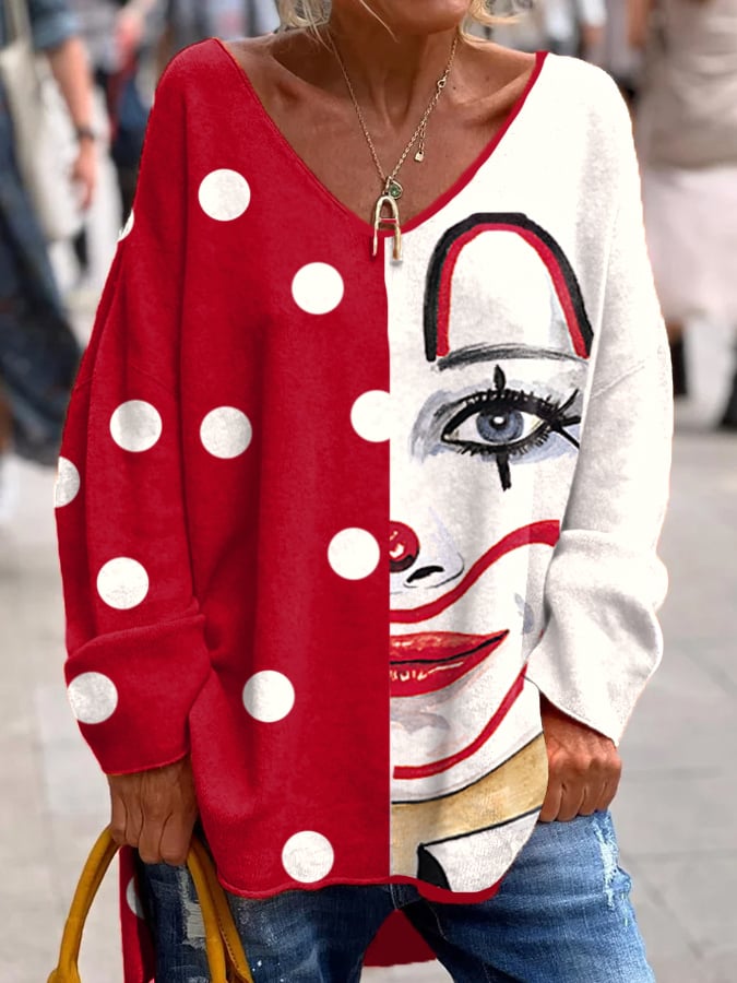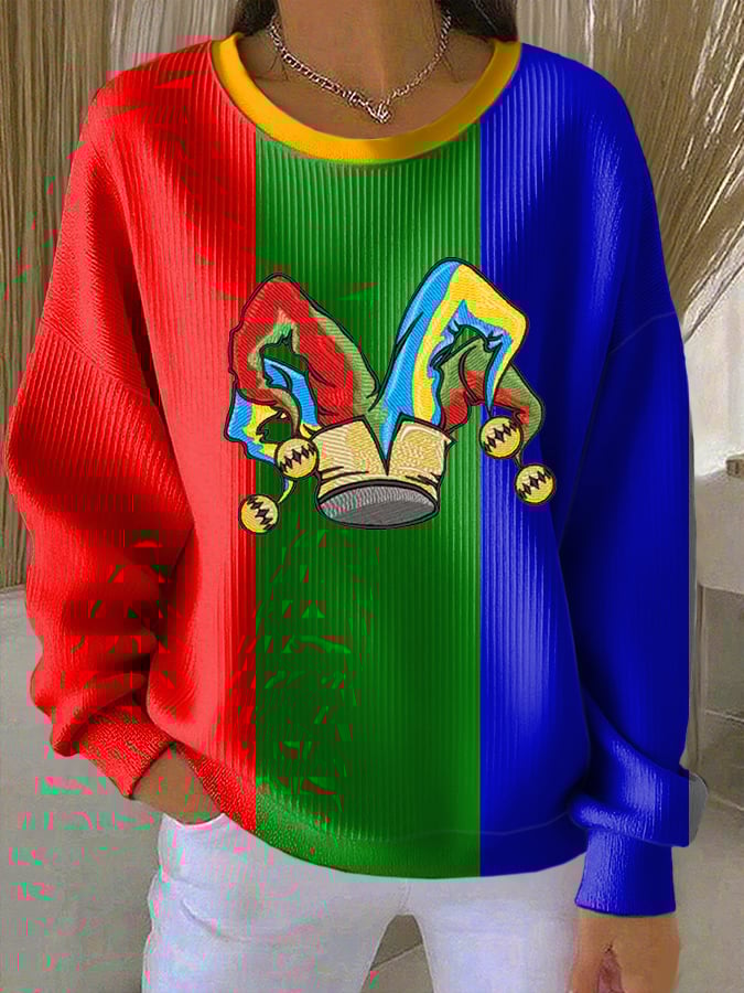 Dame striktrøje med Kölnisk karnevalsmønster, rund halsudskæring og lange ærmer