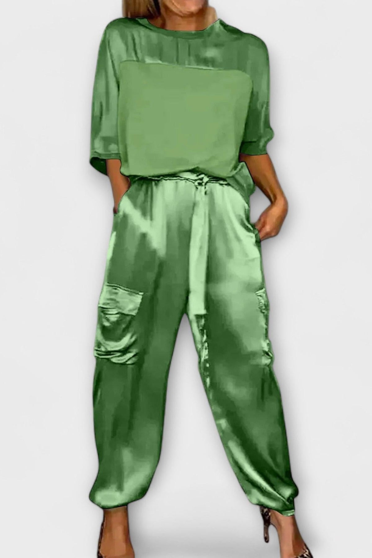 Ida | Silke sæt er et udtryk for uovertruffen komfort og en forfinet silhuet. Dette to-delte sæt i ægte silkestof glider let mod huden og giver et præsentabelt look, både derhjemme, på kontoret og til aftenarrangementer. Hver søm vidner om omhyggeligt håndværk, mens stoffets naturlige glans tilføjer en diskret luksus, der varer ved. Sættet kombinerer tidløs elegance med praktisk anvendelighed og understreger en arv af kvalitet og omtanke. En klassiker, der henvender sig til samlere og dem, der sætter pris på langtidsholdbar stil.