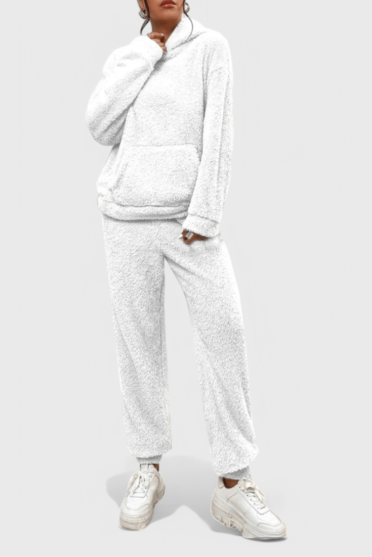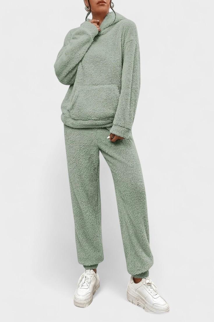 Rosa | Teddy sæt udstråler tidløs elegance og moderne komfort i en varm rosa nuance af tykt teddy-stof. Dette to-delte sæt består af en oversize college-trøje med kengurulomme og matchende bukser, begge i samme luksuriøse materiale. Hvert sting vidner om omtanke og håndværk, og sættet bevarer varme og stil gennem de kolde måneder. Materialevalget og den rummelige silhuet giver en tidsløs appel, der let kan blive frontløber i garderoben år efter år. Med begrænset tilgængelighed fremstår Rosa | Teddy sæt som et tidløst samlerobjekt, der tilbyder langvarig komfort og holdbarhed – en diskret luksus, der nemt kan styles med en enkel top eller tilbehør for et gennemført look hjemme eller på vinterudflugter.