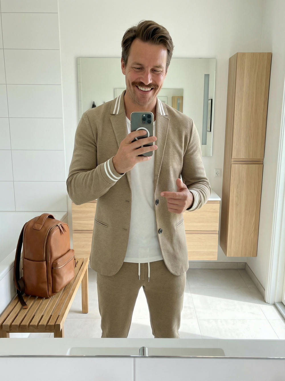 Lukas-sættet – blazer og bukser inspireret af sporty stil – kombinerer det bedste fra to verdener: den minimalistiske elegance i nordisk design og den afslappede komfort i moderne sportswear. Dette sæt er skabt til dig, der er meget på farten, og tilpasser sig naturligt dit tempo – uanset om du er på rejse, til et uformelt møde eller har en dag, hvor du vil se godt ud uden at gå på kompromis med komforten.