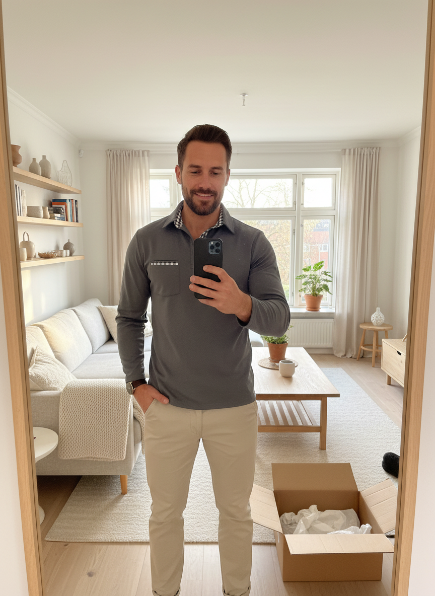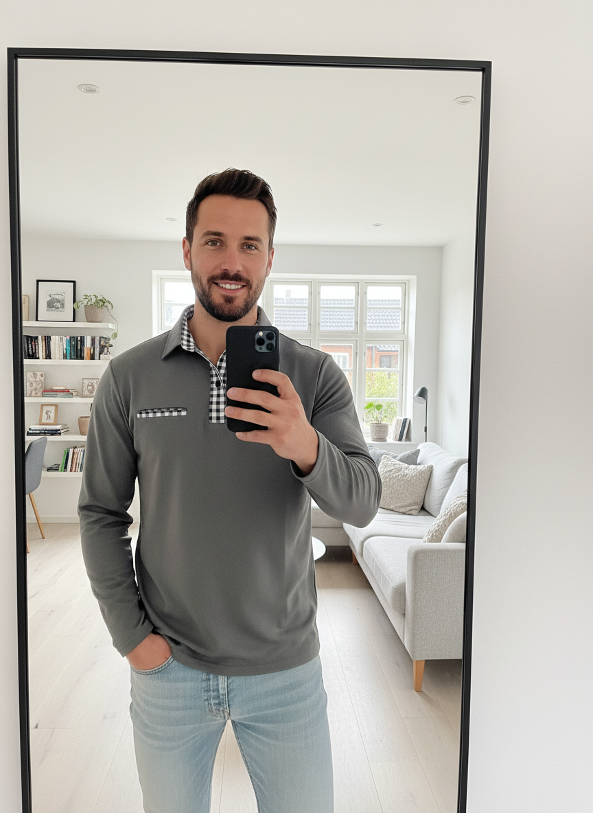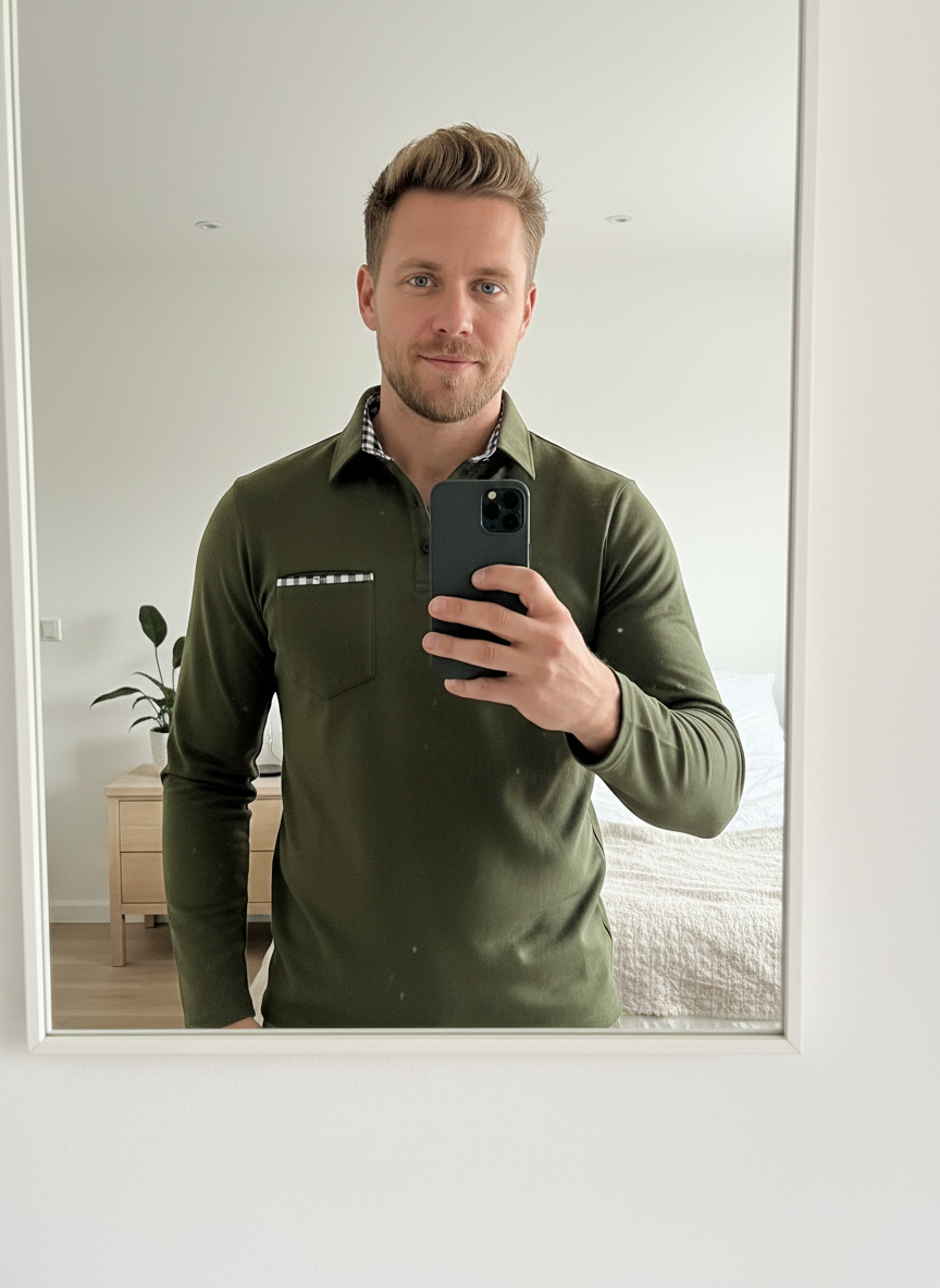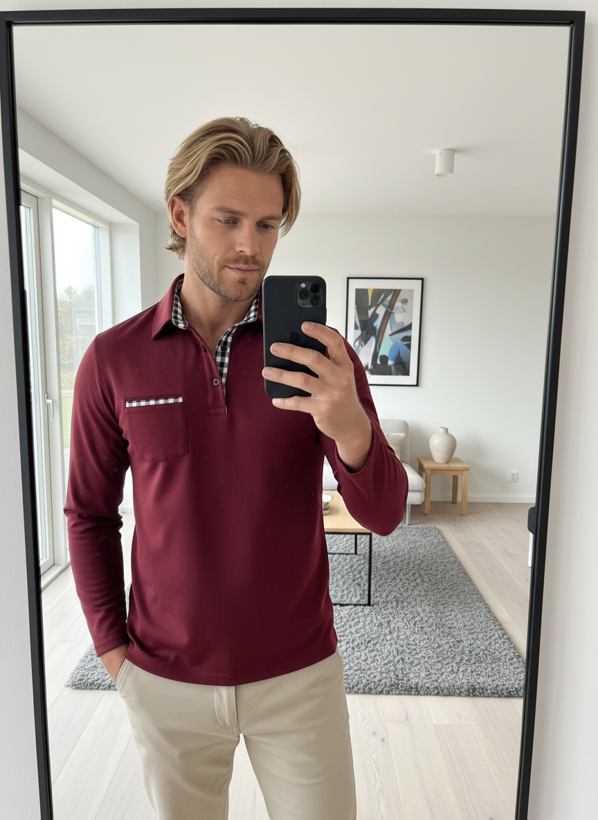 Dette er ikke bare endnu en poloshirt – det er det afgørende element i garderoben for manden, der har bygget sit liv på hårdt arbejde, erfaring og god smag. Det raffinerede snit passer perfekt til chinos til en forretningsfrokost eller jeans til en afslappet weekend. De ternede detaljer på kraven og lommen tilføjer et strejf af underspillet klasse, der ikke skriger, men som alle bemærker. Denne poloshirt er lavet af førsteklasses stof, der ånder og holder formen vask efter vask, og er designet til manden, der ikke går på kompromis med kvaliteten. Det er den slags stykke tøj, du ønsker i flere farver – for når noget er så behageligt og ser så godt ud, hvorfor så nøjes med kun én?