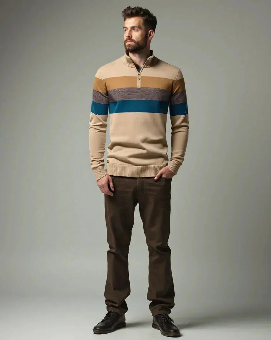 Kombinationen af strik og dress-bukser fungerer overraskende godt. Bukserne har et skræddersyet look uden at føles stive, og sweateren er let men varm. Meget tilfreds!